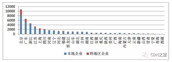 跨地区ISP持证企业数占全国ISP持证企业总数的41.0%,远高于跨地区持证企业数在全国持证企业数中的占比16.9%。(转载自CDN之窗)
