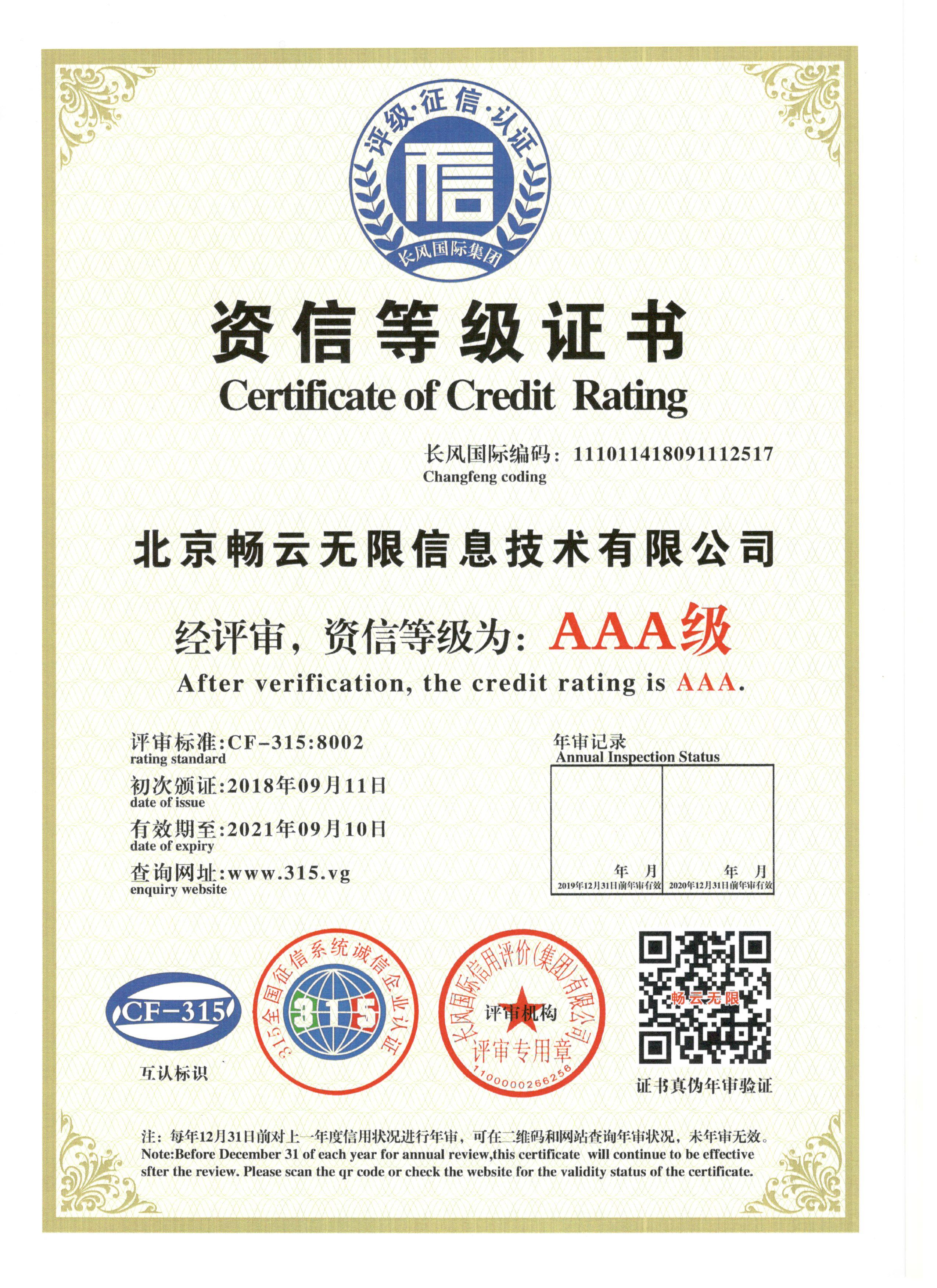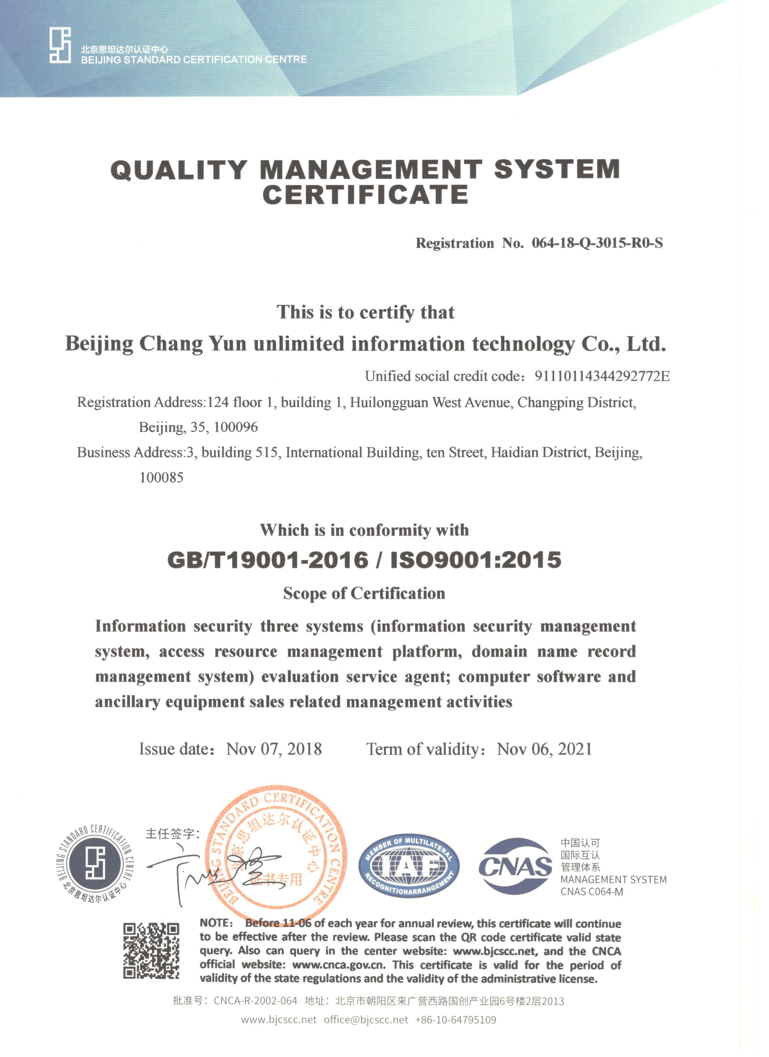 北京畅云无限信息技术有限公司致力于IDC、云、CDN大数据和云计算基础服务流量管理、云安全、云存储、全方位感知网络安全态势,各行业都在积极响应国家政策号召,工信部政策导向,公司在“诚信、责任、合一、感恩、发展”的核心价值观指导下,秉承聚焦目标市场,满足客户需求,细节成就品质的经营理念。公司依托于A股上市公司,目前公司人员百余人,与千家互联网企业保持紧密合作,行业经验十余年,畅云无限紧密关注市场需求,以雄厚的技术实力为后盾,陆续开展出网络安全系统,探针平台及其他的网络安全管理等产品。畅云无限以其精湛的技术、专业周到的售后服务,得到了广大客户的充分肯定,并赢得了相当高的商业信誉。 近年来,畅云无限紧密关注市场需求,以雄厚的技术实力为后盾,陆续开发出网络安全系统,探针平台及其他的办公用材等产品。畅云其精湛的技术、专业周到的售后服务,得到了广大客户的充分肯定,并赢得了相当高的商业信誉,同时公司也主营系统集成方面业务。 畅云无限为工信部认定重要服务商,最近跟众多大公司签订技术咨询合同,为众多名企办理全网IDC,全网ISP,地网IDC和地网ISP资质,全网SP资质,地网SP资质,ICP资质,VPN资质,CDN资质,互联网资源协作资质,虚拟运营商资质,61城市宽带接入网资质,合作的大客户包括蓝讯,光环新网,万网数据,中金,网宿科技,UPYUN,北京首都在线,企商在线,上海数据港,联想集团,四川艾普,赛伯乐集团,网宿科技北京分公司,博大集团,德利迅达,大连致远,上海用九网络,北洋集团,白山云科技,等众多大型集团客户,我们有绝对的经验和优质的服务体系,确保客户在第一时间拿到牌照和通过三套系统和机房安全运行系统工信部评测,通过国家工信部认证。 |