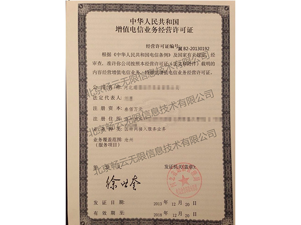 ISP证,全称为互联网接入服务业务(ISP),是第二类增值电信业务(B14类)。